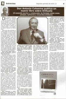 Hace unos días publicaba su nuevo trabajo que bajo el titulo de "Orihuela en mis Artículos" está dividido en varios apartados en los cuales habla sobre la Orihuela de ayer y de hoy, sobre la Navidad y actos religiosos, sobre algunas personas que por algún motivo han destacado en sus profesiones, luego hay artículos de opinión y varios relatos cortos que harán disfrutar a los lectores al mismo tiempo servirán para que las nuevas generaciones conozcan un poco mas esta "origüelica del Señor" que tanto quiere y añora Don Antonio Colomina.