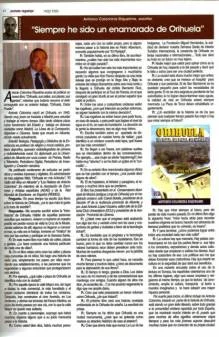 –Con independencia del centenar largo en revistas de carácter sindical de ámbito nacional del Ministerio del Interior, en el diario Información , La Hoja de tu Barrio , la revista El ia io , revista Perito (literario-artístico) y por último la ya citada Orihuela Digital, en la vengo colaborando de manera habitual.