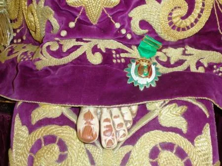 Mayordomo de N.P. Jesús Nazareno. A la derecha, imposición de la Medalla de la Orden de San Antón en los pies de Ntro. P. Jesús