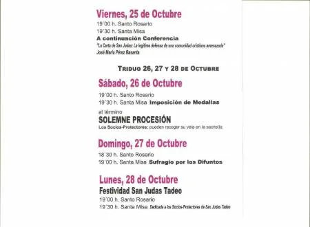 JUDAS TADEO TENDRÁN LUGAR EN ORIHUELA, LOS DÍAS Y HORAS QUE SE DETALLAN A CONTINUACIÓN: