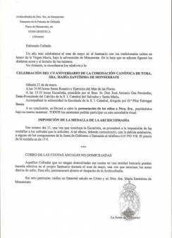 ASÍ COMO A LOS ACTOS A CELEBRAR DEL CV ANIVERSARIO DE LA CORONACIÓN